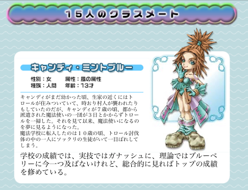 思い出の女の子であるキャンディも、序盤から中盤にかけてはキルシュと同様にあまり興味が無くなり、最終メンバーに入れない予定ではあったのですが、ストーリーが良すぎたのと、やっぱりイラストもドット絵も可愛いということでしっかり育てなおして、現在もメインメンバー入りしています。